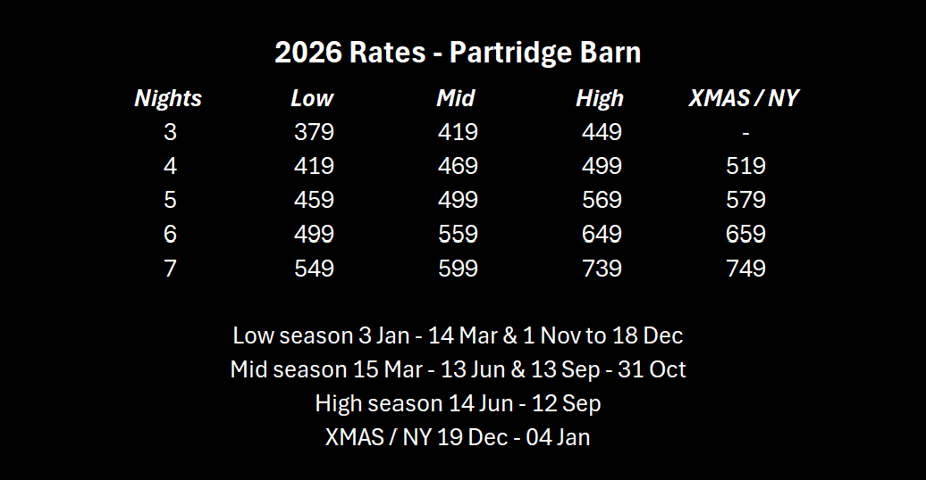 Partridge Barn is our beautifully appointed 2 bedroom property & is in a courtyard style setting next-door to our 1 bedroom Pheasant Barn & Alborough House.